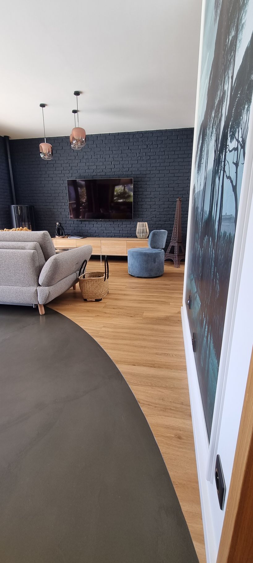 Près de Lannion, notre entreprise utilise le béton ciré pour les sols, murs, escaliers, crédences de cuisine, douches à l'italienne, etc. Les réalisations en béton ciré peuvent se faire aussi bien sur des projets de rénovation que sur du neuf. En rénovation, il peut se "poser" directement sur un carrelage existant ou sur une faïence après un travail préparatoire. De par sa faible épaisseur, cela réduit les modifications à apporter au niveau des portes ou d'une cuisine aménagée.